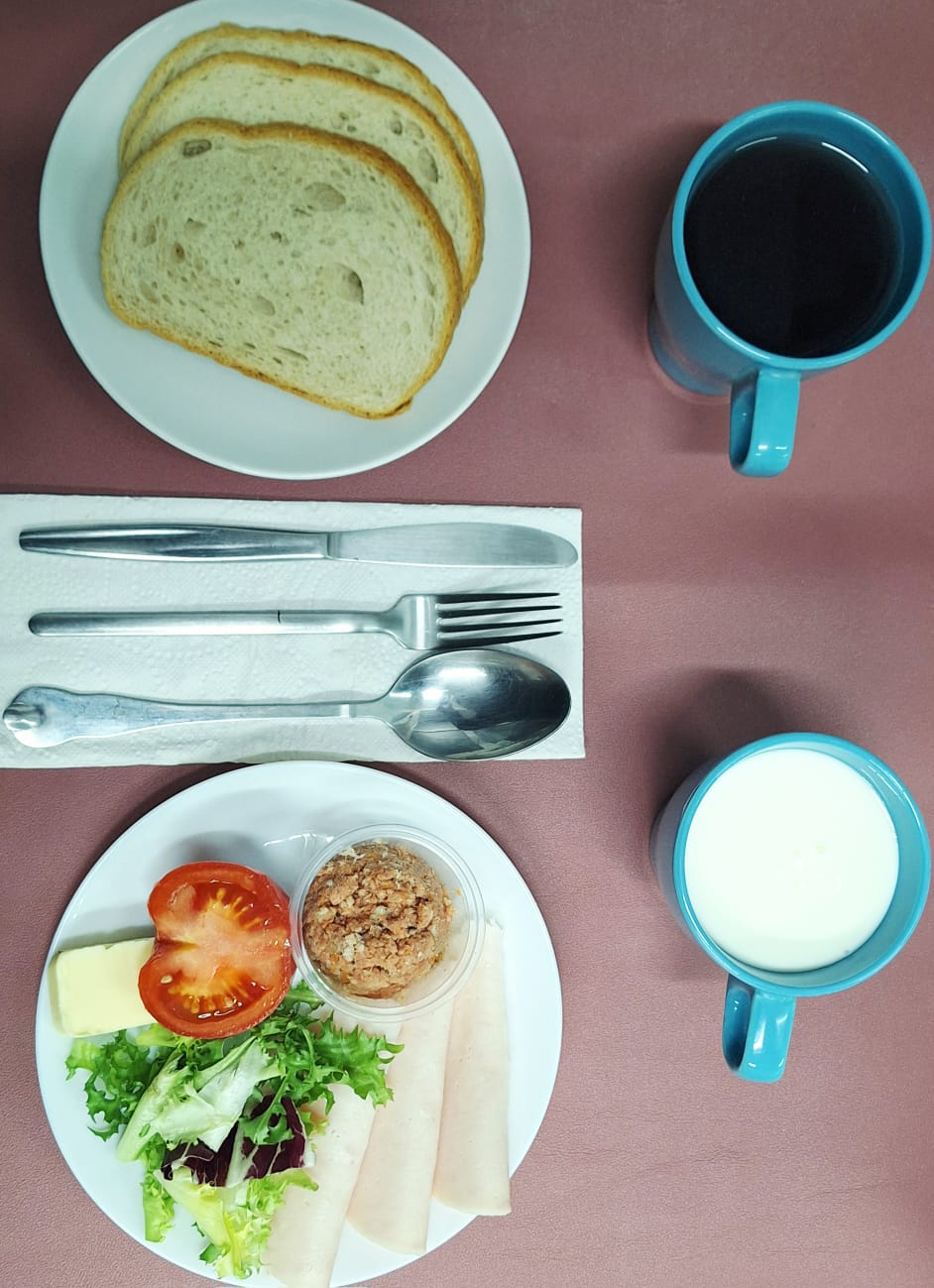 Składniki: maślanka 250 g, pasta z ryby gotowanej z warzywami 70 g, polędwica drobiowa 50 g, pomidor 60 g, mix sałat 30 g, masło 10 g, pieczywo pszenne 90 g, herbata owocowa 250 ml